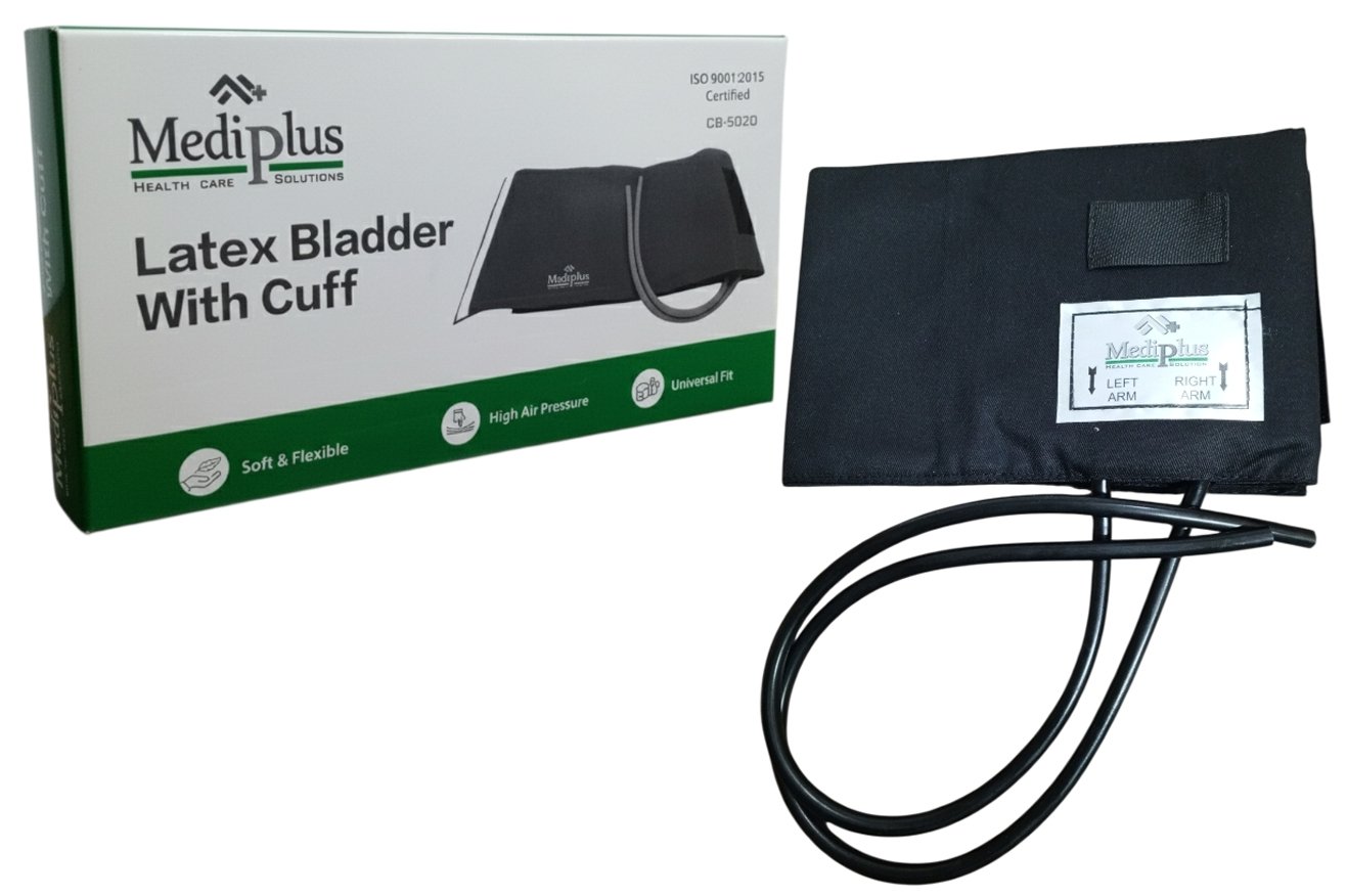 The Mediplus BP Cuff with Bladder (Latex) is a durable and reliable blood pressure cuff designed to deliver accurate and consistent BP readings when used with compatible sphygmomanometers. It features a high-quality latex inflatable bladder that ensures uniform pressure distribution around the arm for precise measurement results.